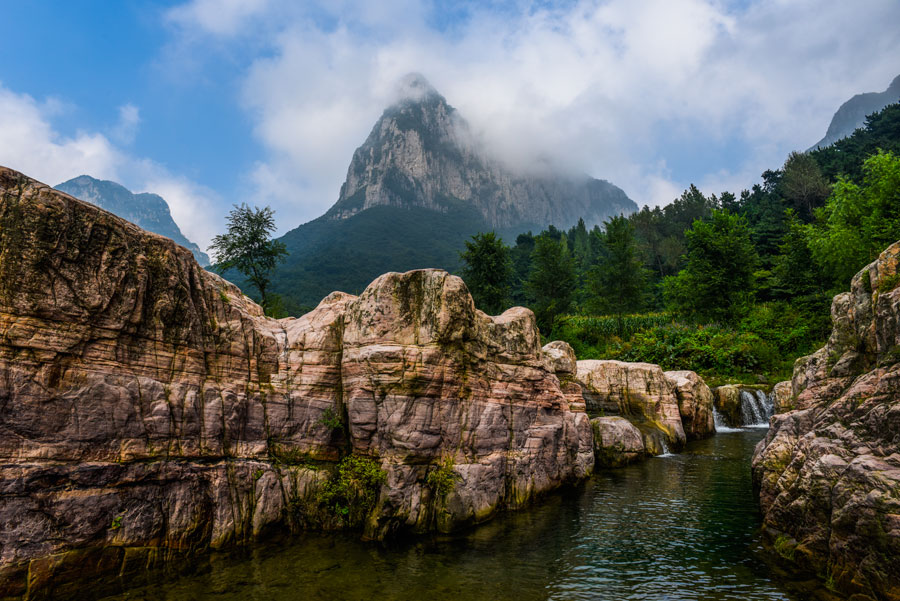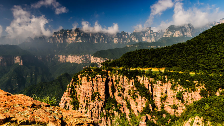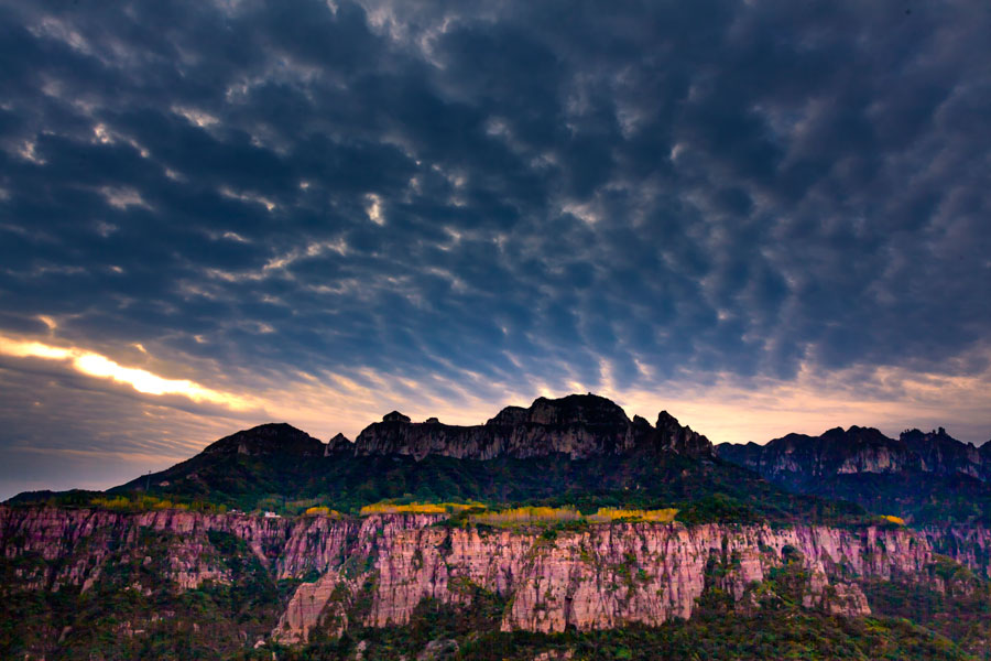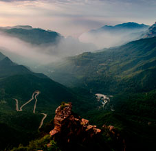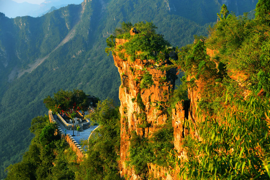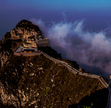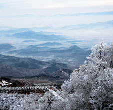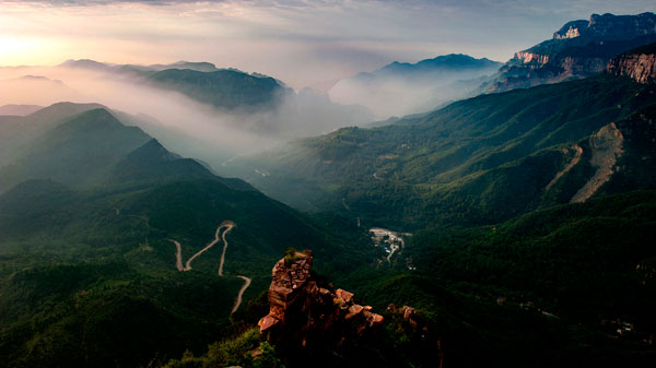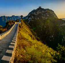轎頂山景區(qū)位于河南省輝縣市西北部,北接萬仙山,西連王莽嶺,南鄰八里溝,東望侯兆川,遠遠望去,山形似轎頂,故得此名。轎頂山的自然景觀與人文景觀相得益彰,是南太行山之精華所在;這里群山環(huán)抱、峽谷萬丈,紅巖絕壁、似刀劈斧削,怪石嶙峋,如仙似獸,青山滴翠,秀山蔽日。摩崖石刻,雄壯可觀,是文化藝術之精華。轎頂山四季皆景;春來山花爛漫,千蝶竟舞;盛夏云海仙山,百鳥鳴澗;秋更層林盡染,多彩紛呈,冬雪如畫,山舞銀蛇,好一派北國風光!